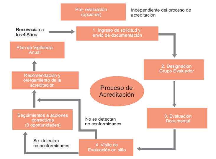 En México, un laboratorio clínico que solicite la acreditación debe proporcionar la documentación comprobatoria con base en las políticas y procedimientos establecidos por el organismo acreditador ema . La solicitud debe entregarse en forma documental o electrónica y junto con los correspondientes documentos que incluyan el alcance de la acreditación solicitada por el laboratorio clínico. En la figura 2, se describe el proceso de acreditación para los laboratorios clínicos con base ISO 15189.