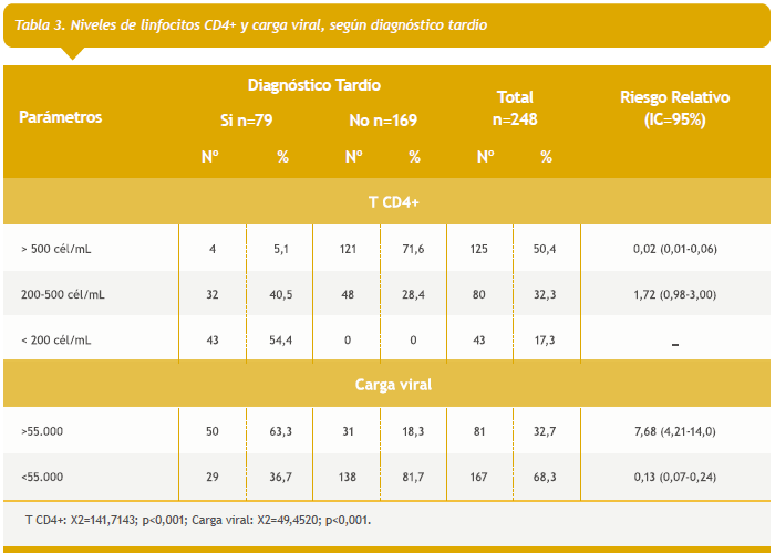 Niveles de linfocitos CD4+ y carga viral y su relación con el diagnóstico tardío y la mortalidad