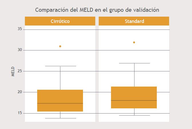 Grafico 1. Comparación del MELD en grupo de validación.