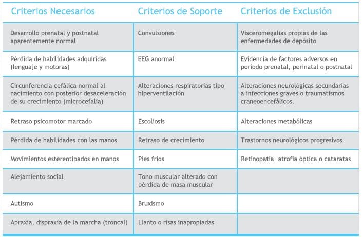 Cuadro 1. Criterios diagnósticos para Síndrome de Rett1.