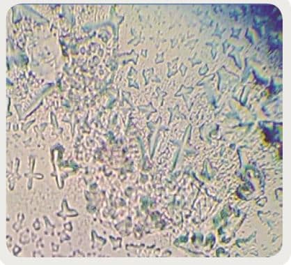 Figura 1. Cristalografía fragmentada: catalogada como negativa cuando hay gel lubricante.