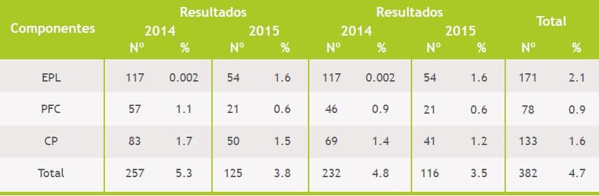 Tabla 3. Resultados de los exámenes de laboratorio en el control de calidad de los componentes obtenidos.
