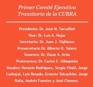 El 4 de diciembre del año 1.982, se crea la Confederación Unificada Bioquímica de la República Argentina (CUBRA), que logra su personería jurídica por la Inspección General de Justicia de la Nación el 15 de junio de 1.984, según Resolución N° 241/84; dando anuncio a su 1° Convocatoria a sesión del Consejo Federal, el día 27 de Julio de ese mismo año en la Sede de la Confederación de Clínicas, Sanatorios y Hospitales Privados de la República Argentina. En esta primera convocatoria se designó a las primeras autoridades de la CUBRA, (período 1984-1986): Dr. José Ma. Sarraillet como Presidente y a Juan José Vigliocco como Secretario.