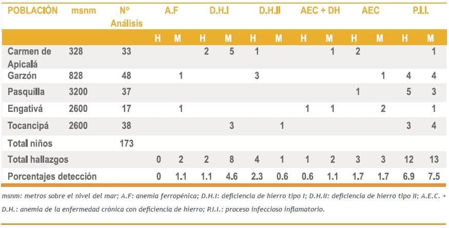 Expertos de la Organización Mundial de la Salud (OMS) han reiterado la necesidad de realizar investigaciones que proporcionen información precisa acerca de la prevalencia de la anemia ferropénica. Con la información obtenida la OMS, el Fondo de Naciones Unidas para la infancia (UNICEF), la Universidad de las Naciones Unidas y el Plan Nacional de Alimentación y Nutrición señalan la necesidad de realizar programas de intervención para controlar las DH. Lo anterior con el fin de disminuir las secuelas nefastas sobre el desarrollo psicomotor, periodo de crecimiento rápido y diferenciación cerebral, sistema inmune y maquinaria energética aeróbica, ya que estos aspectos interfieren directamente en el proceso de aprendizaje. Además, es importante caracterizar con base en la procedencia geoFigura y los patrones gastronómicos, la incidencia de los estados subclínicos.