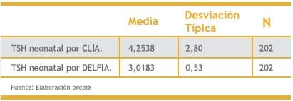 No se encontraron valores compatibles con hipotiroidismo neonatal en el grupo de 202 RN incluidos en el estudio.