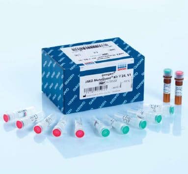 Qiagen ofrece para la detección de la mutación V617F/G1849T del gen JAK2 en el ADN genómico de pacientes con posible neoplasia mieloproliferativa, el kit ipsogen JAK2 MutaSearch (673823). Este kit permite una detección sensible y altamente específica de la mutación JAK2 V617F/G1849T.
