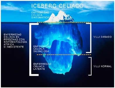 La Edad AEA culminó en la idea de que aún queda mucho que entender sobre EC, con el símil del «iceberg celíaco»: mientras que la punta está representado por los casos con síntomas típicos, la mayoría de las personas con intolerancia al gluten están bajo el agua, y son difíciles de identificar debido a los síntomas atípicos o incluso inexistentes y/o debido a la mucosa aparentemente normal. La idea del iceberg sugiere que existe un porcentaje de personas normales que pueden responder al gluten con diferentes reacciones patológicas y que las diferentes herramientas de diagnóstico podrían desentrañar la enfermedad.
