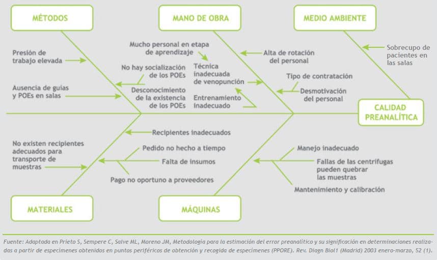 La gestión de la calidad total para los análisis de laboratorio requiere un control de las tres fases, para reducir e idealmente eliminar todos los errores dentro del proceso. La fase preanalítica es una parte vital del proceso, ya que en ella es donde interviene un mayor número de profesionales de diferentes disciplinas, desde el médico que ejecuta la petición, la enfermera que realiza la toma de muestra,hasta el mensajero o auxiliar de enfermería que transporta la muestra al laboratorio. Actualmente, esta fase se considera la más crítica, debido a que en ella es donde se produce un mayor número de errores, principalmente por la ausencia de instructivos o falta de socialización e incumplimiento de los mismos y es en donde se puede perder más tiempo. En ésta, el analista del laboratorio clínico tiene menos control y para llevar a cabo cualquier proceso de mejora involucra la auditoría u observaciones no participantes en las cuales se verifica el cumplimiento y socialización de los instructivos y guías de manejo. Por lo tanto, la detección de los errores en esta fase son estrategias claves para mejorar la calidad en el laboratorio.