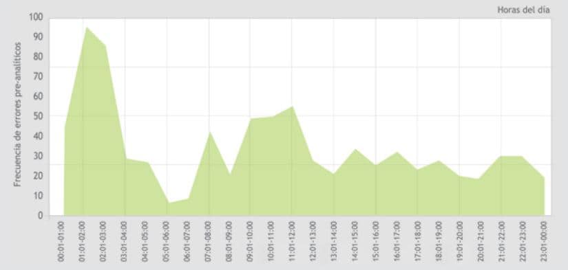 Gráfico 4. Frecuencia de errores preanalíticos por hora del día.