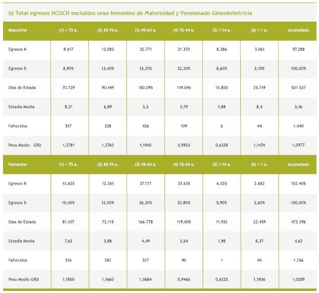 1 Unidad de GRD . Hospital Clínico Universidad de Chile . Santiago , Chile .
