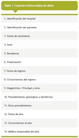 Los datos habitualmente requeridos para el CMBD se muestran en Tabla 1