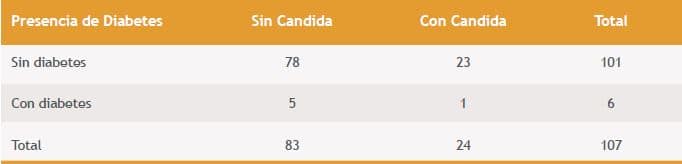 Tabla 4. Presencia de Candida según la existencia de Diabetes