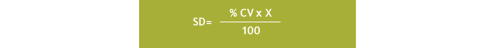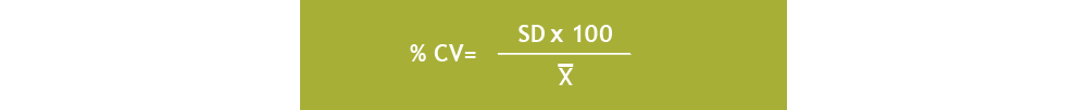 Imprecisión: Se halla la media, la SD y %CV de los valores habituales que ya se obtuvieron junto con la gráfica de Levey-Jennings y se desechan los valores fuera de control. Se puede utilizar el programa de informática MedLabQC, versión 3.21. Se considera aceptable si %CV ≤ %CV de referencia o si SD ≤ SD de referencia. Si no se acepta puede verificar con la SD y el Eta como se explica a continuación: