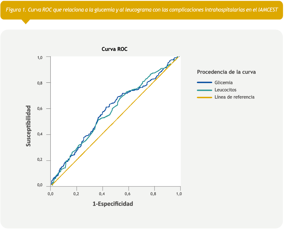 Objetivo: Evaluar la capacidad predictiva de la hiperglucemia y la leucocitosis de complicaciones intrahospitalarias en pacientes con infarto de miocardio agudo con elevación del segmento ST.
