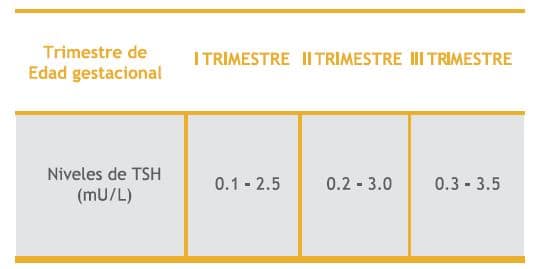 Cuadro 1. Valores de Referencia de TSH de acuerdo al trimestre de edad gestacional.10