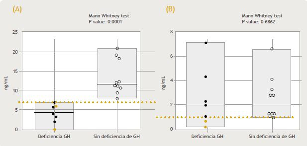 Como controles se seleccionaron a pacientes con talla baja y con una prueba de estímulo para HC con un resultado > 7,0 ng/mL.