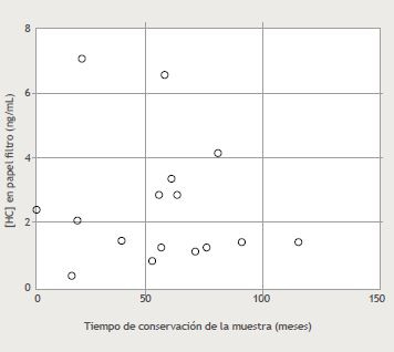 Binder et al.7,8 demostraron la factibilidad de determinar HC en sangre de papel filtro, validando los ensayos de laboratorio para su análisis, pero en éstos casos el almacenamiento se realizó de forma refrigerada, a 6° Celsius. En nuestro centro, el almacenamiento de las muestras de papel filtro se realiza a temperatura ambiente, en un lugar protegido de la humedad y la luz solar. Como vemos en los resultados, no existe una correlación directa entre el tiempo de almacenamiento de las muestras en estas condiciones, con los resultados obtenidos en la concentración de HC.