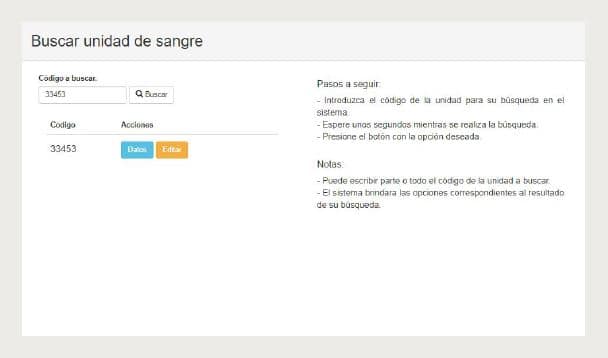 Figura 5. Interfaz para buscar unidades de sangre.