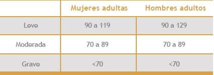 • Puntos de corte para la concentración de hemoglobina en sangre (establecidos por la Organización Mundial de la Salud para definir la anemia):11