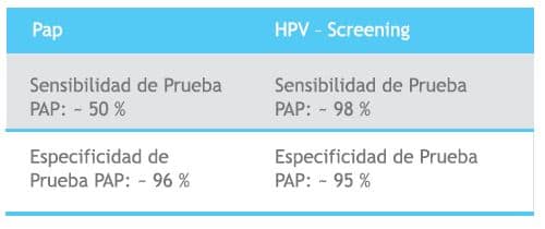 Estos datos arrojan que la Prueba Pap es menos sensible que la detección del VPH, ya que la citología es limitada para detección de síntomas, pero no para encontrar la causa del cáncer cervical, que representa una infección con un tipo VPH “High Risk” (hrHPV).