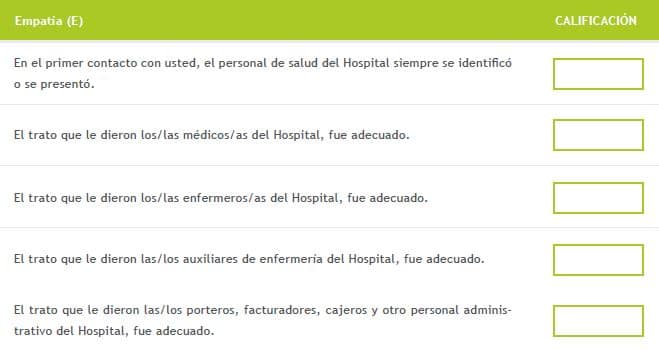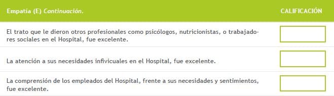 Ahora vamos a hablar específicamente de lo que usted piensa sobr e la atención que recibió en el Hospital.