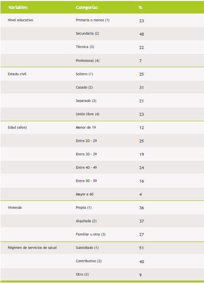 El perfil y las características de los pacientes usuarios del HLHL, se describen a continuación: la población que atiende el HLHL es mayoritariamente joven (56 % tiene 39 años aproximadamente), con predominio de mujeres (55 %) y personas casadas (31 %). Apenas el 36 % de ellos habita en vivienda propia y casi el 71 % tiene como máximo nivel educativo medio. El 50 % está afiliado a un régimen de cobertura de salud subsidiado por el Estado, usualmente dirigido a persona de bajos recursos, sin capacidad de pago, tiene acceso a los servicios de salud a través de un subsidio que ofrece el Estado, mientras que el 40 % tiene un régimen contributivo, que es la forma de afiliación para personas con alguna vinculación laboral, como los trabajadores formales e independientes, los pensionados y sus familias. El 23 % tienen educación primaria o menos, el 48 % tiene estudios de secundaria, el 22 % educación técnica y el 7 % son profesinles (tabla 1).