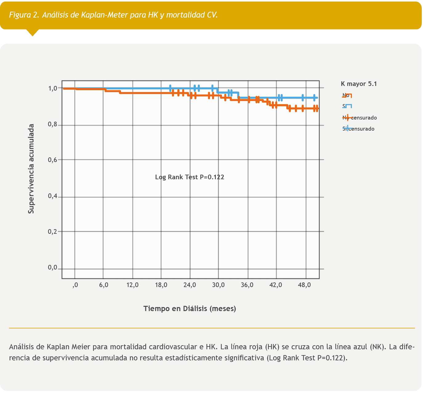Sin embargo, no se observó disminución de la mortalidad cardiovascular en HK (Log Rank Test: P=0.122) (Figura 2).