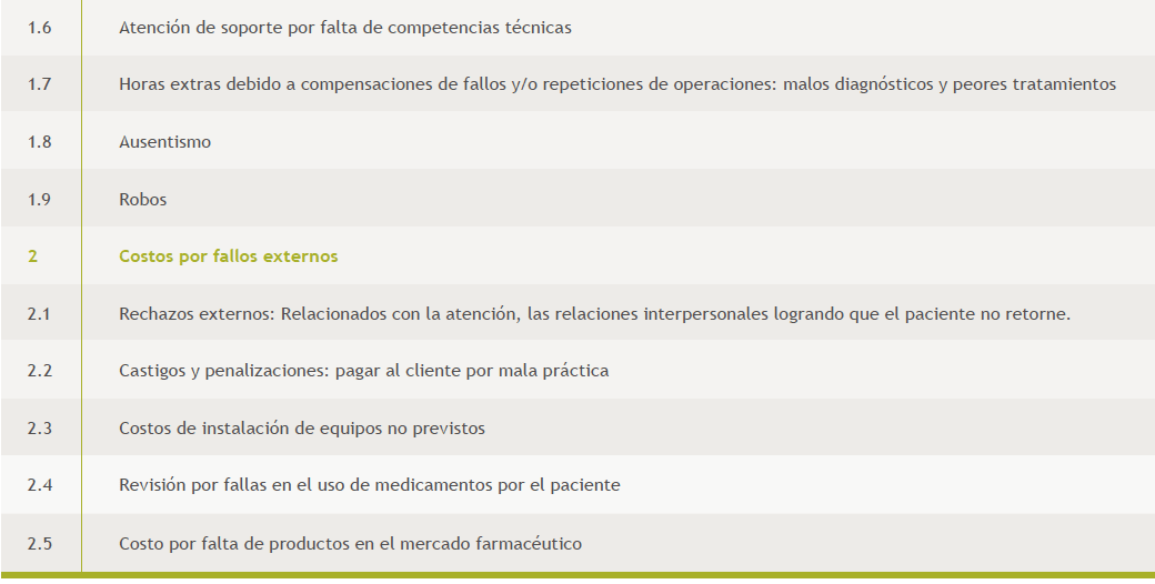 En salud los costos de no calidad son los gastos que se generan fuera del protocolo de la enfermedad, motivados principalmente por la mala praxis de los profesionales.(12)