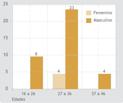 Al analizar las variables demográficas pudo apreciarse un predominio del grupo etario de 27-36 años en los pacientes con el síndrome de Gilbert, con 67,5 % del total, y una amplia primacía del sexo masculino, con 36 hombres, lo que representó 90,0 %. Solo hubo 4 féminas y estas correspondían al grupo etario de 27-36 años, para 10,0 % (Figura 1).
