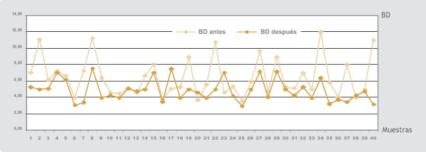 Figura 3. Cifras de bilirrubina directa antes y después del tratamiento.