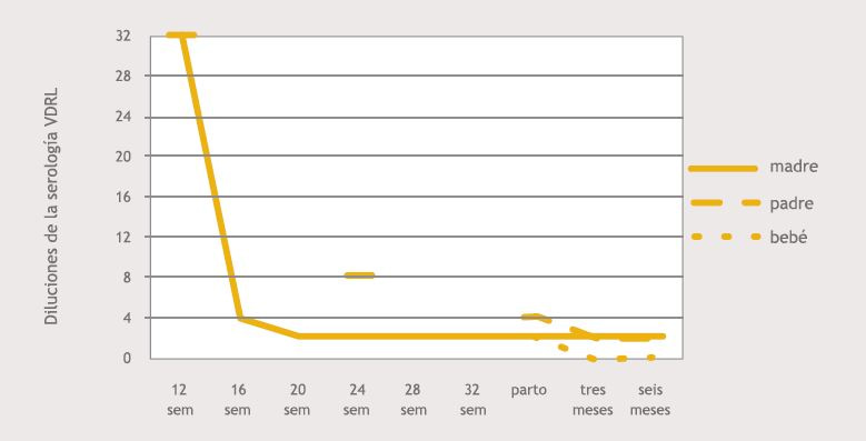 Tras finalizar el tratamiento, la mujer embarazada debe ser controlada con VDRL todos los meses durante el resto del embarazo. Al producirse el parto se controlará a ambos y cuando estas resulten dudosas se debe proceder a las pruebas treponémicas específicas. (7) Este seguimiento garantiza evaluar la efectividad de tratamiento a partir de la disminución de dos diluciones con respecto a la serología inicial.