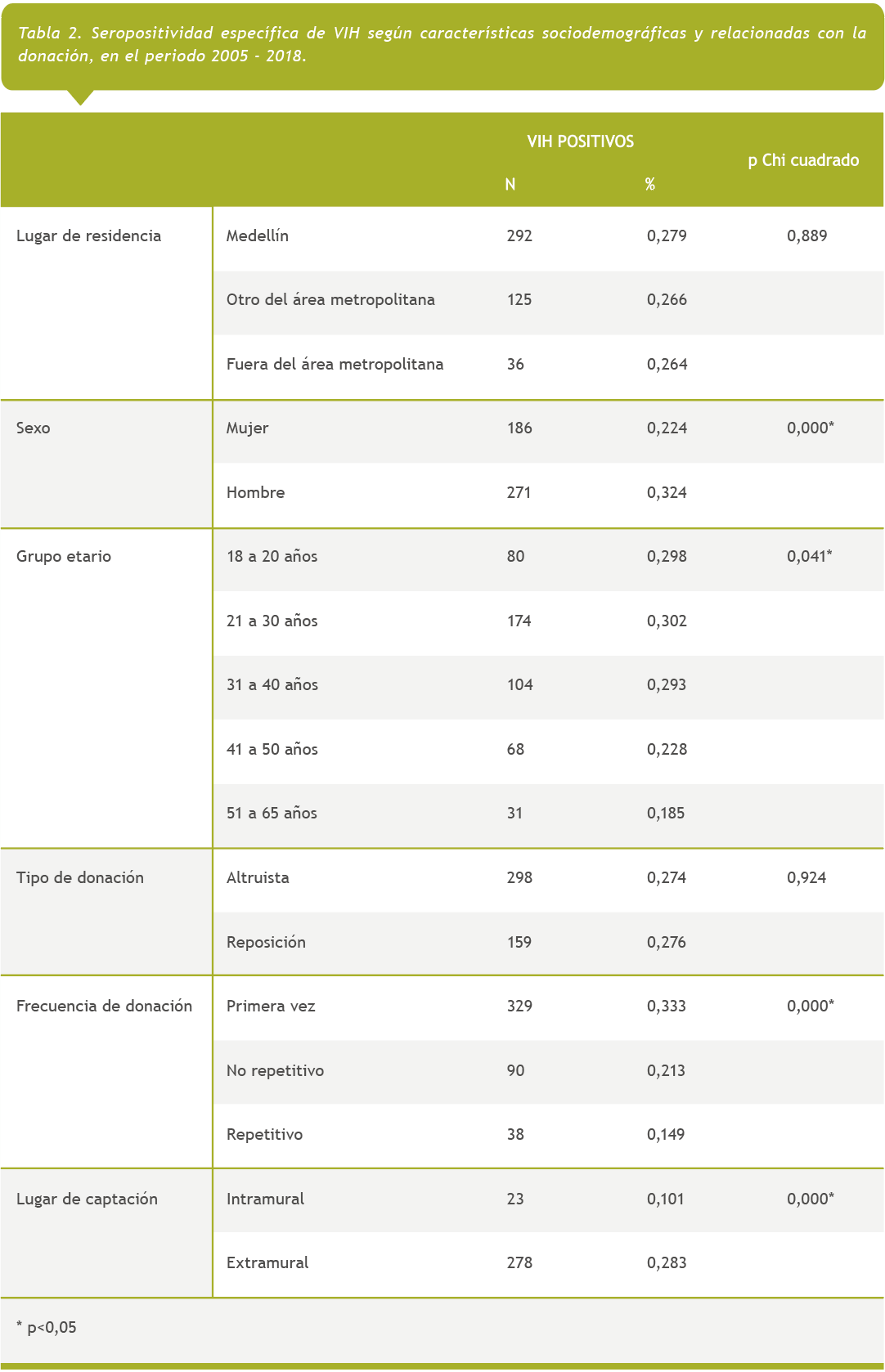 Seropositividad de VIH y factores asociados en donantes de un Banco de Sangre de La Ciudad de Medellín – Colombia, 2005 – 2018