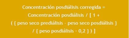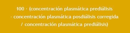 Las concentraciones plasmáticas posdiálisis de moléculas unidas a proteínas y de medianas moléculas, se ajustaron a la hemoconcentración en función de los cambios en el volumen extracelular valoradas por el peso pre- y posdiálisis con arreglo a la ecuación14:
