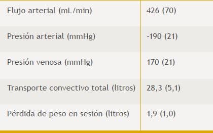 Las características de las sesiones de hemodiálisis se recogen en la tabla 1.
