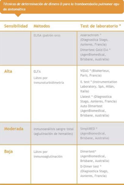 • Un dímero D de alta sensibilidad negativo excluye TEP en pacientes con probabilidad clínica baja o intermedia.